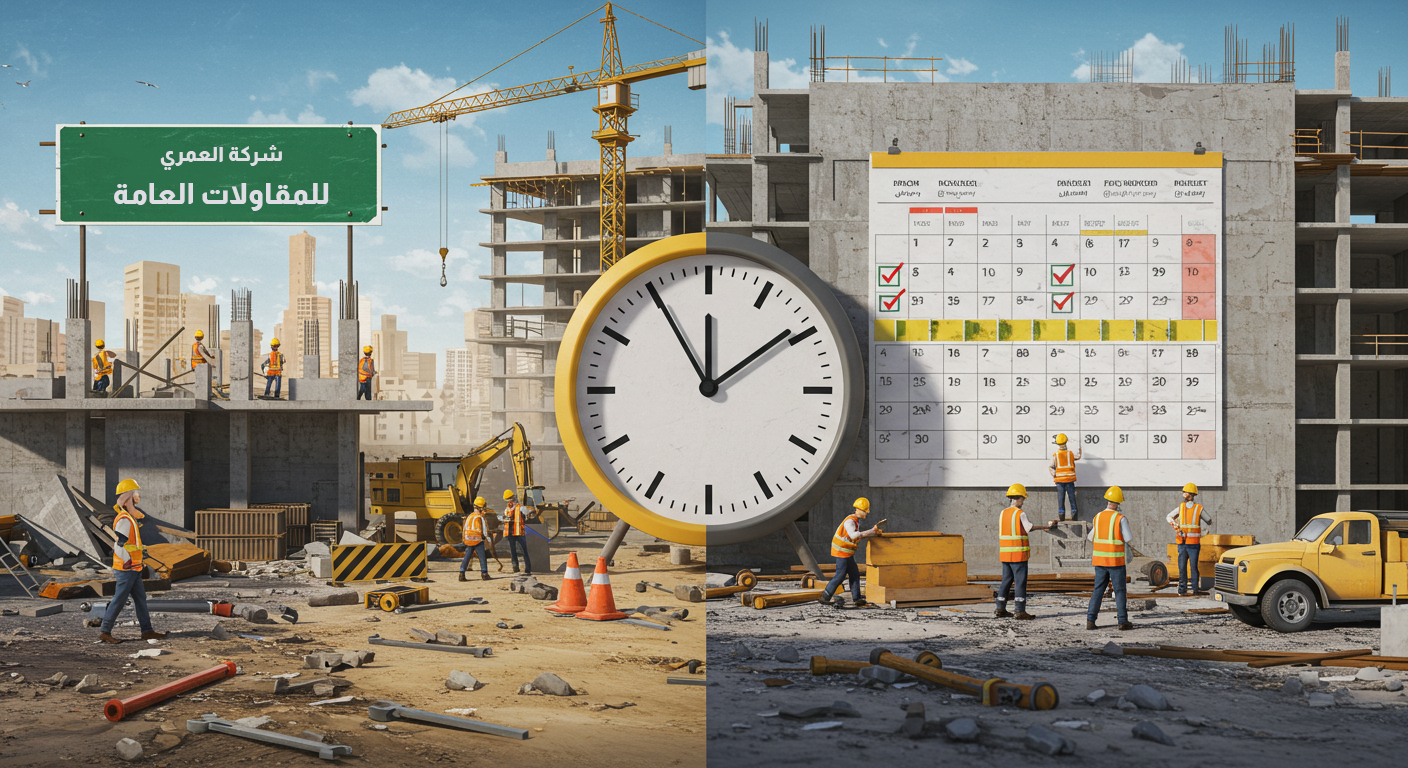 في شركة العمري للمقاولات العامة، نؤمن أن الوقت عنصر أساسي في جودة المشروع. لذلك نحرص على: